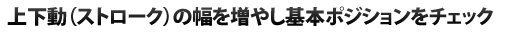 上下動により、ボードがグラグラしたり、フロントサイドまたはバックサイドのどちらかに傾いてしまわないように、スムースな上下動を心がけてください。 |